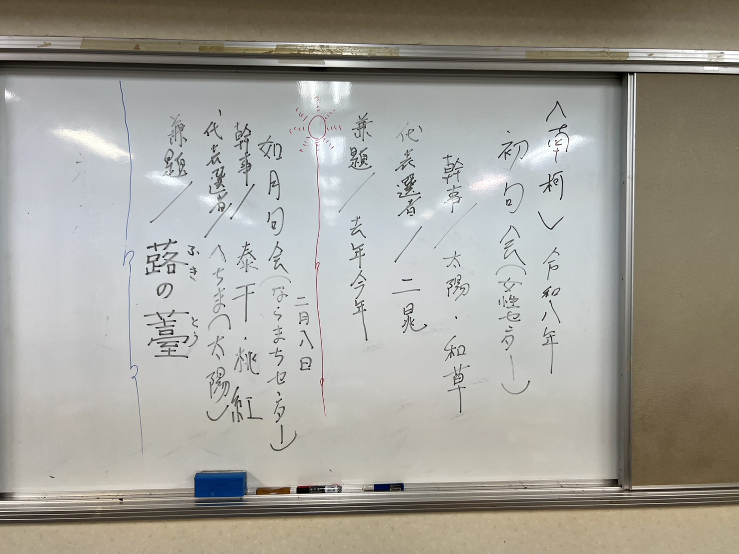 | 初句会は1月14日(日曜日)奈良県女性センターにて行われました。参加者21名、出句26名、点盛りはへちまさんでした。 |